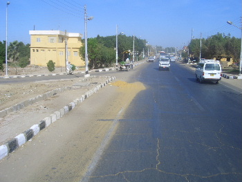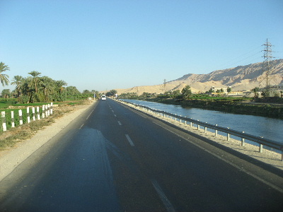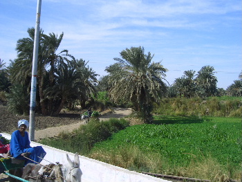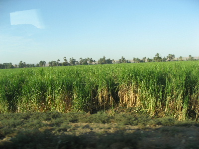 アスワンへの道は、市街地を外れると、サトウキビやバナナ・とうもろこし等の