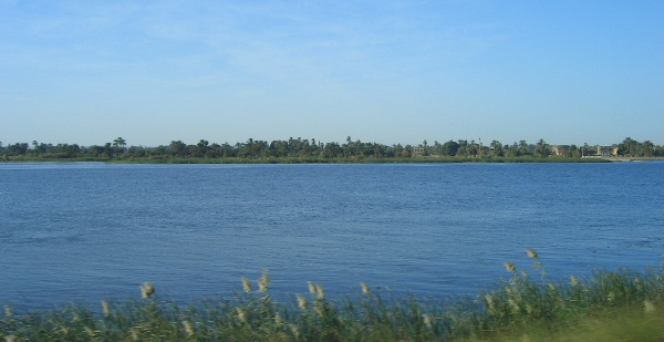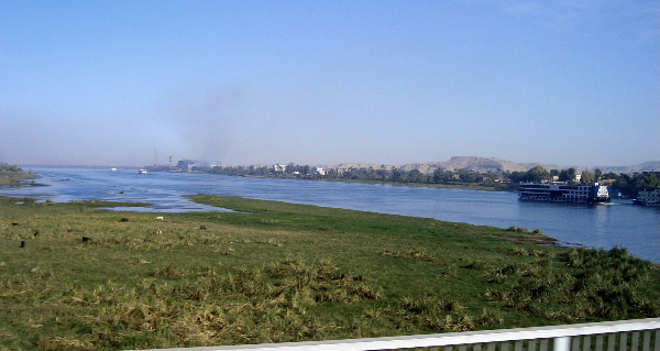 途中、ナイル川を渡りました、川にはナイルクルージングの客船が何隻も