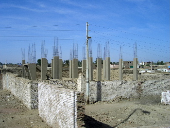 建築中の家です。柱を建てて、後はレンガで壁を作ります。横に上に