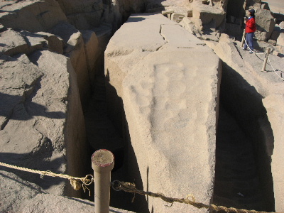 アブシンベルへ向かう途中、岩の亀裂が原因で、切り出しが中止になった、