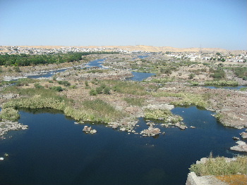 神殿を背にナイルを見渡しています。ナセル湖と命名された美しい所です.
