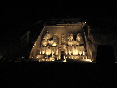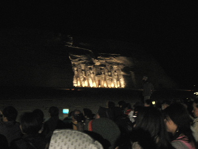 アブ・シンベル神殿音と光のショーにやって来ました、足元には誘導灯が.