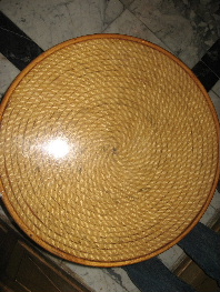 大雑把とは言えないですね。円テーブルの表面は、縄による装飾です