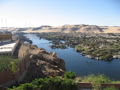 放流側の景色です。ナイルの水の色は、本当に青く美しい.