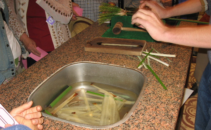 に行きました。作り方を説明してくれました。パピルスの茎を一定の寸法に