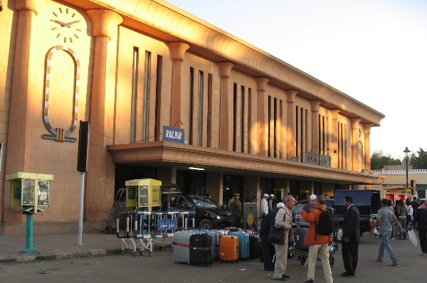 アスワン駅に着きました。夕焼けが建物の屋根を照らしています