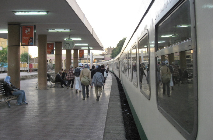 カイロ行きの列車。ホームも綺麗です。私達はカイロの手前のギザ駅で