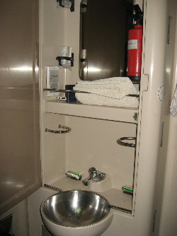 夕食は客車付きの客室乗務員?が運んでくれます、航空機と同じです