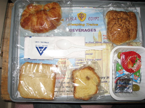 首都カイロの旅の最初は午前4時ごろの車内朝食から始まる