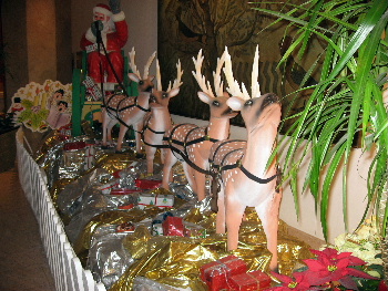 セキュリティの玄関を通過すると、トナカイとサンタさん・雪ダルマ君の