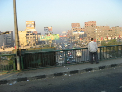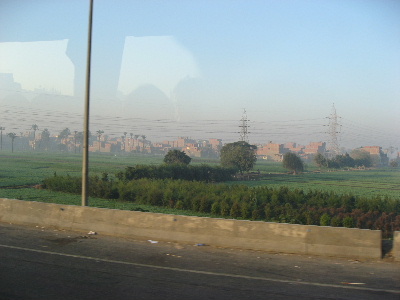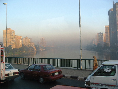 カイロ市内の朝は、まだ靄に煙っています。地理的には、ナイル川の東