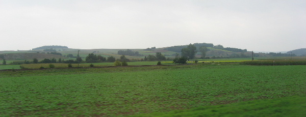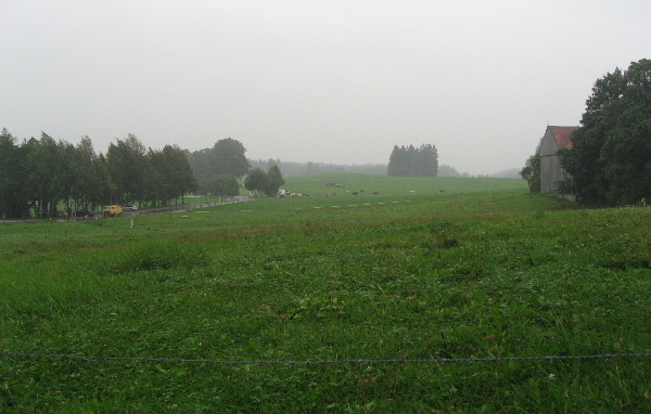 教会の周囲は、牧草地が広がる。緑の小山に建っている教会だ.