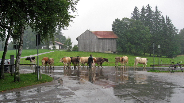 このあたりの道路は、車だけではない。牛さん達も行き来する、決して