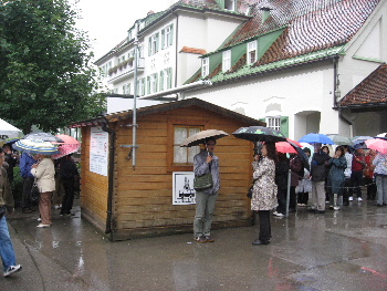 観光客が多くて、長い行列のため1時間以上、雨の中を立って待った