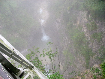 身を乗り出して、谷底を覗いた。かすかに水の音が聞こえるだけ.