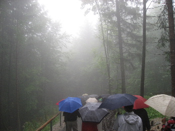 ホテルから、ノイシュバンシュタイン城へ向かう道は、雨脚衰えず、窓越しの