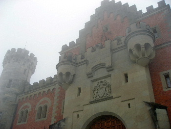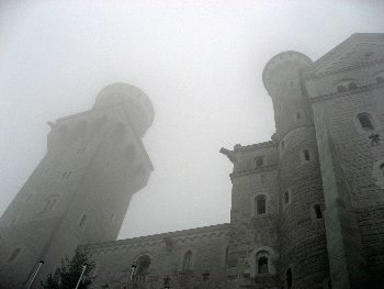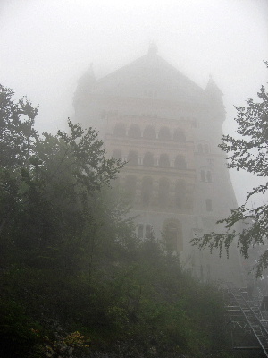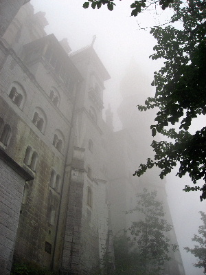 靄の中から、お城の一部がぼんやり浮かび上がって見えてきた.