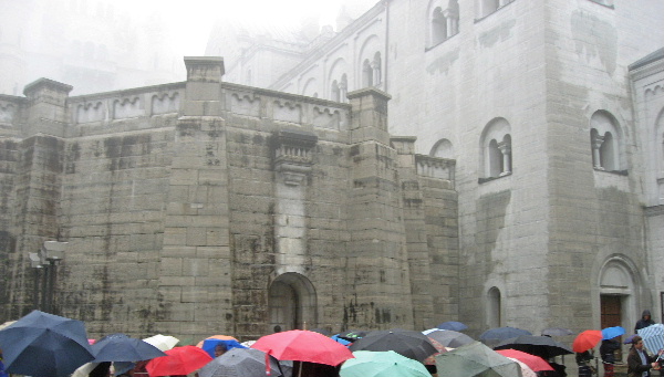 皆んなものも言わずに、お城への道を雨に濡れながら歩いた.