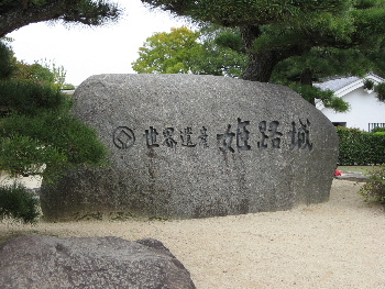 「世界遺産 姫路城」 と刻まれた 見事な巨石が観光客を 待ち受けています
