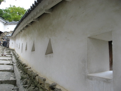 覗き込むと 眼下には土塀と通路が見えます。 .