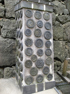 した時 瓦の紋章を自分のものに変えたからです。石垣の表面に紋章を刻ん