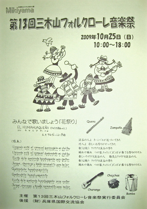 第13回三木山フォルクローレ音楽祭が 今年はインフルエンザで