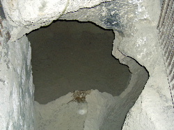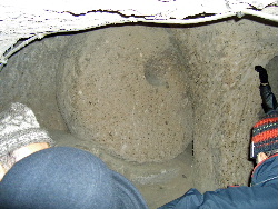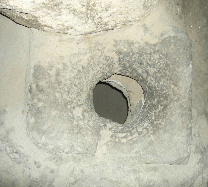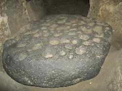 た場所に煙の出口があるので、発見されにくい。左の石は穀物?を砕い