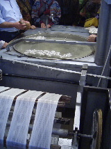 繭を湯洗して1本づつを束ね、巻き取り、次にそれを撚って、太い糸に