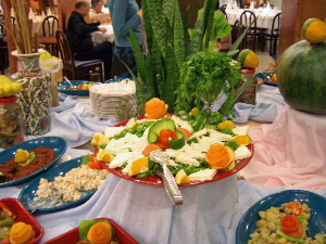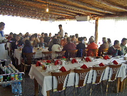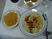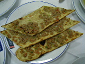昼食はトルコ風ピザ、牛肉の煮込み、デザートは蜂蜜シロップ