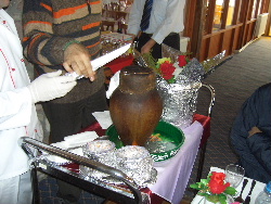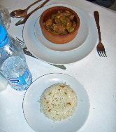 昼食は煮込み料理(ビーフシチュー?)壷に野菜とお肉を入れ