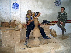 さあ!陶器工房見学です、轆轤で製作中の老先生、御歳70を超えられて