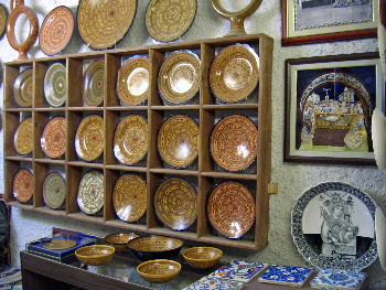 ぎっしり展示された絵皿、お茶碗、壷類、小物を探せば2〜3千円のものも