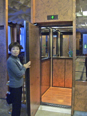 ホテルのエレベーター、ドアは手動式?締めると昇降する