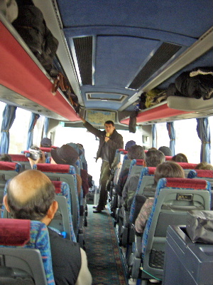 バスの中、マイクを持っている人が、ガイドのMrサイトさん