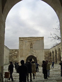 玄関、中庭、モスクの入り口、ガイドさんも小声で説明