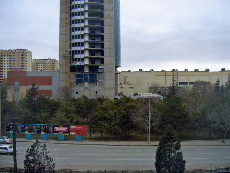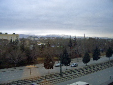 町中のスーパーもお休み、残念である、ホテルの窓から町中を望む