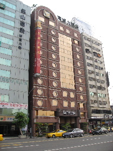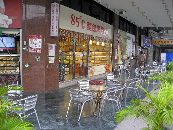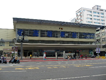ホテルの前に、高雄駅がある。駅周辺にはファーストフード店が連なる。.