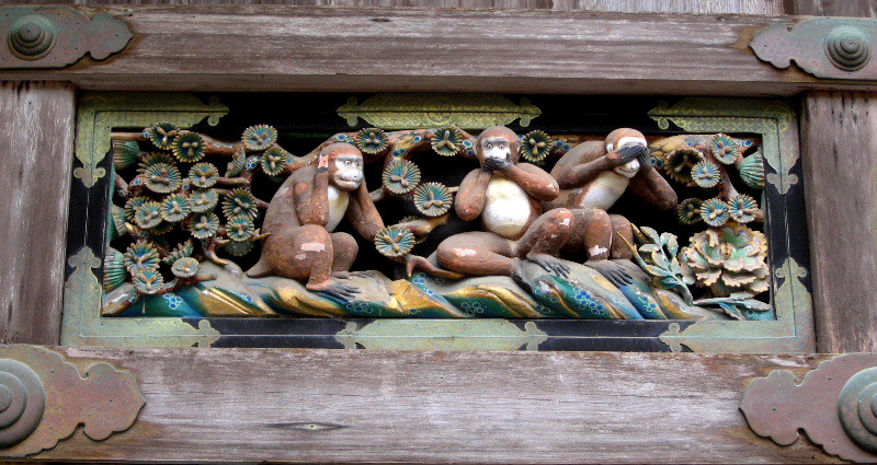 て表現しています。「見ざる・言わざる・聞かざる」の三猿の彫刻が有名です。 .