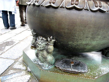 香炉は三本指の 獣の魔物? が支えている。背丈の大きい どでかい相輪楼? .