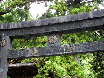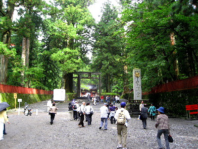 東照宮への参道。木立が覆い 凛とした気分になる。鳥居にかかる