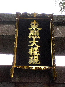 「東照大権現」の黒に金文字の額束は、権威の象徴か .