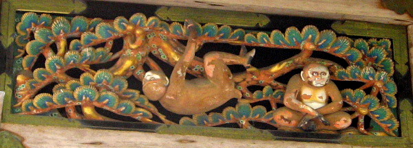 猿の彫刻が八面飾られています。この彫刻は猿になぞらえ、人の一生を風刺し