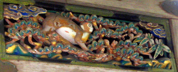 いよいよ、三猿の神厩舎に辿りつきました。猿は馬を守ると言うので、欄間には