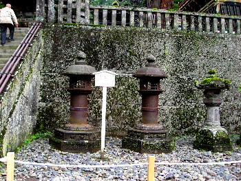 16世紀半ばに造営された陽明門の石垣や、鉄や銅の灯篭は