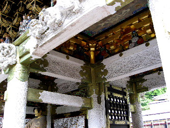 庇部分を UPで見ると、多種多様の動物や飾りが、ぎっしり詰まっている。