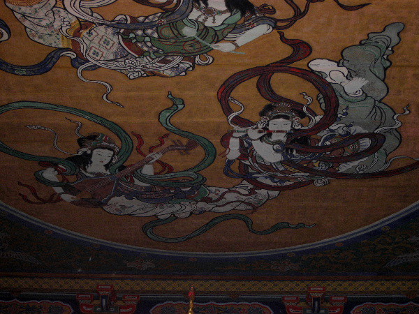 舎の天井には、楽器を奏でる、天女が描かれている。.