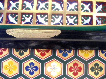 一部分完了した亀甲紋の絵。改修前のかすれて ぼけたものに比べ鮮やか.