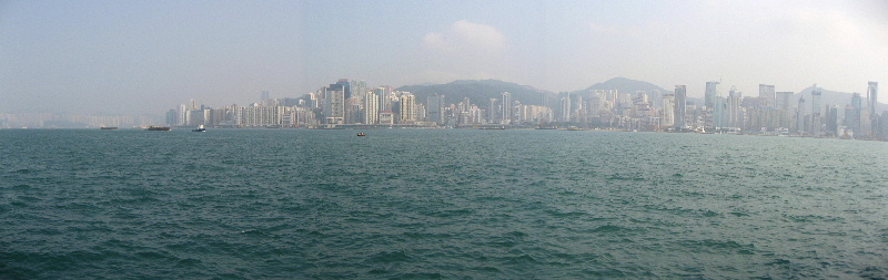 香港島に入る。この景色は香港独特で、水平線の上に、高層ビルが 林立している