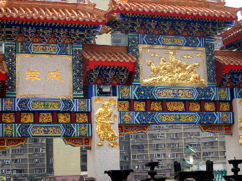 門の両脇を守るのは「狛犬」ならぬ「龍」だ。