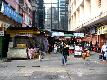 ビルの連立する谷間に、露天が雑居する、香港独特の光景だ。 .